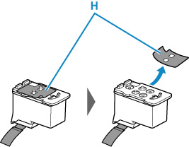 Võtke uus prindipea pakendist välja ja eemaldage ettevaatlikult selle silt (H).
