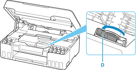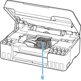 Vajutage sakke ja avage prindipea lukustuskaas (F).
