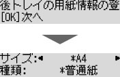 後トレイにセットした用紙に合わせて、用紙サイズと用紙種類を登録してください。