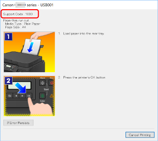 Kui printimisel tekib tõrge (nt paber on printerist otsa saanud või tekkinud on paberiummistus), kuvatakse automaatselt vastav tõrketeade. Järgige tõrketeates kirjeldatud juhiseid.
