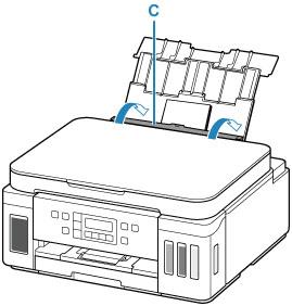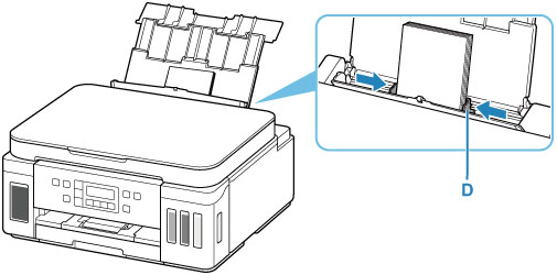 Libistage mõlema paberijuhiku avamiseks parempoolset paberijuhikut (D) .