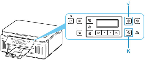 14. Kontrollige paberimääranguid ja vajutage nuppu Must (Black) (J) või nuppu Värv (Color) (K).