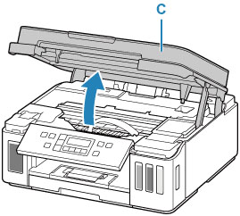 Kui skannimisseade/kaas on avatud kauem kui 10 minutit, võib prindipea hoidik liikuda ja süttib märgutuli Häire (Alarm). Sel juhul sulgege skannimisseade/kaas ja avage see uuesti.