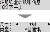 更换纸张后,将显示纸张信息注册屏幕。 根据装入的纸张,注册纸张信息。