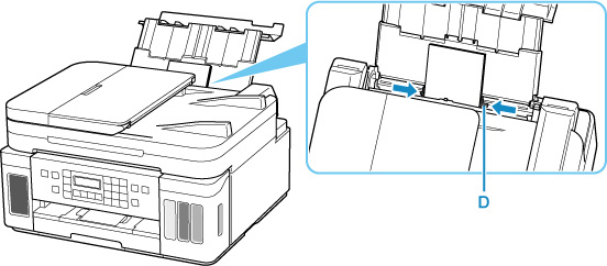 Kohdista paperipinon molemmat reunat liu'uttamalla oikeanpuoleista paperiohjainta (D).