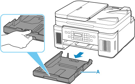 Vedä kasetti (A) tulostimesta.