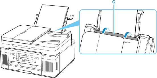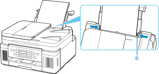 Kohdista paperipinon molemmat reunat liu'uttamalla oikeanpuoleista paperiohjainta (D).
