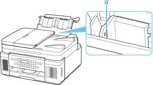 Älä lisää paperia täytön ylärajan merkin (G) yli.