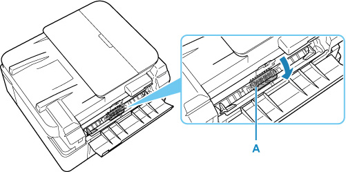 Samalla kun pyörität yli kaksi kertaa paperinsyöttörullia (A), joka sijaitsevat takalokeron sisäpuolella, pyyhi ne liinalla, joka on kostutuksen jälkeen puristettu kunnolla kuivaksi.