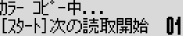 • 原稿の読み取り中に[やり直してください]と表示された場合は、OKボタンを押してからストップボタンを押して、いったんコピーを中止してください。そのあと、コピーできなかった原稿からコピーし直してください。