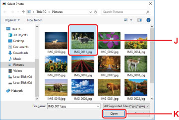 Yazdırmak istediğiniz fotoğrafları (J) tıklatın ve Aç (Open) (K) seçeneğini belirleyin.