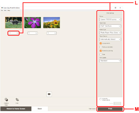 Print Settings (L) altında kopya sayısını ve diğer seçenekleri belirtin.