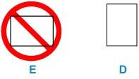قم دائمًا بتحميل الورق بالاتجاه الطولي (D). يمكن أن يؤدي تحميل الورق بالاتجاه العرضي (E) إلى انحشار الورق.
