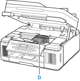 Hållaren för skrivhuvudet (D) flyttas.