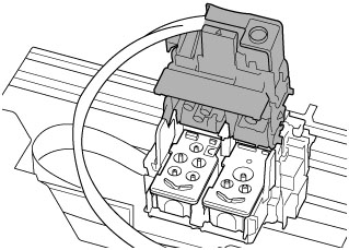 Installera skrivhuvudet C (färg) i den vänstra hållaren för skrivhuvud och skrivhuvudet B (svart) i den högra hållaren för skrivhuvud. Kontrollera etiketten och installera skrivhuvudena på rätt sätt.