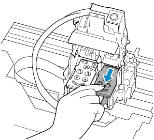 Tryck ned låsluckan på skrivhuvudet tills den klickar.