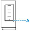Wanneer de inkt opraakt of zich fouten voordoen, knippert het Alarm-lampje om u op de hoogte te brengen van het probleem. Op dit moment kan de printer niet afdrukken. Controleer het resterende inktniveau aan de hand van de inkttankaanduiding op de voorzijde van de printer. Als het inktniveau in de buurt van de lijn van de ondergrens (A) komt, vult u de inkttank bij.