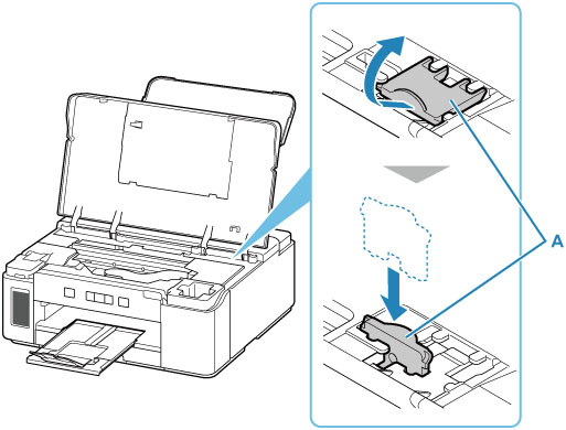 Verwijder de wagenstop (A) en duw deze helemaal in het gat in de printerzijde.