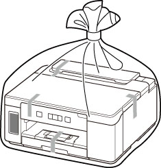 Wanneer u de printer vervoert, moet u de printer in een plastic zak stoppen, zodat er geen inkt lekt.