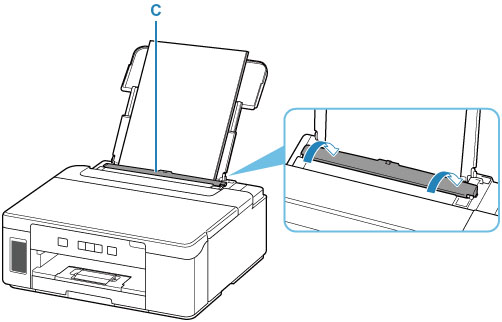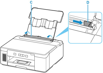 Verschuif de rechterpapiergeleider (D) om beide papiergeleiders te openen.