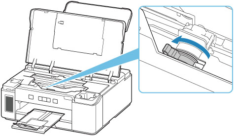 Înclinaţi pârghia supapei de cerneală complet spre stânga.