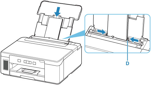Verschuif de rechterpapiergeleider (D) om beide papiergeleiders te openen.