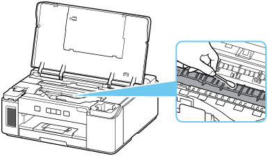 Als het probleem zich blijft voordoen nadat u de onderste plaat nogmaals hebt gereinigd, zijn de uitstekende delen aan de binnenkant van het printer mogelijk vuil. Veeg inktresten op uitstekende delen weg met bijvoorbeeld een wattenstaafje.