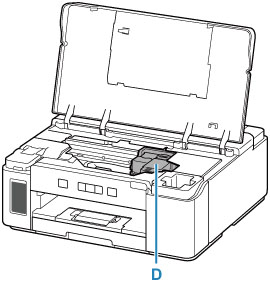 De printkophouder (D) schuift naar de vervangingspositie.