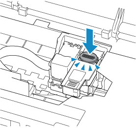 Important- Împingeţi ferm butonul de îmbinare, până când acestea se fixează pe poziţie cu un clic; în caz contrar, imprimarea poate deveni imposibilă.