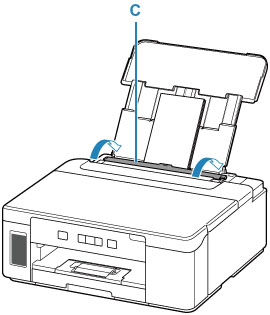 Glisaţi ghidajul pentru hârtie (D) din dreapta pentru a deschide ambele ghidaje pentru hârtie.