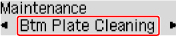 4. Utilizaţi butonul stânga dreapta pentru a selecta Curăţare parte inf. (Btm Plate Cleaning) şi apăsaţi butonul OK.