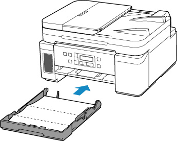 3. Încărcaţi numai această foaie de hârtie în casetă întorcând foaia cu coamele pliurilor în sus şi marginea jumătăţii fără pliuri orientată spre marginea îndepărtată.
