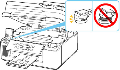 • Переконайтеся, що ковпачок чорнильниці надійно закрито. Якщо кришку чорнильниці відкрито, закрийте ковпачок чорнильниці належним чином.