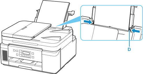 Посуньте правий напрямник для паперу (D), щоб відкрити обидва напрямники для паперу.