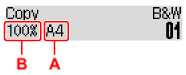Confirmaţi dimensiunea paginii (A) şi gradul de mărire/micşorare (B).