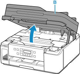 Deschideţi unitatea de scanare / capac (B).