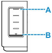Când cerneala este lângă linia limitei inferioare (B), cerneala este pe terminate. Reumpleţi rezervorul de cerneală.
