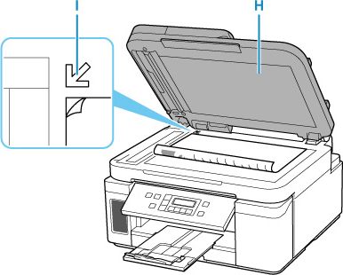 Mở nắp tài liệu (H).