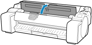 Sujete el gancho (D) y abra la cubierta de bloqueo del cabezal de impresión.