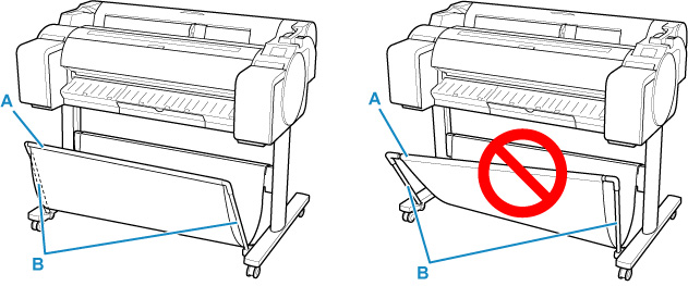 Per riporre i documenti stampati nel raccoglitore, per prima cosa premere l'asta laterale (B) in modo uniforme affinché l'asta anteriore (A) non sia obliqua, quindi utilizzare il raccoglitore.
