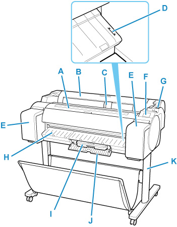 - (E) Coperchio del serbatoio d'inchiostro