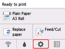 Da Impostazioni periferica (Printer settings) nella schermata Home, impostare Alim autom. all'accensione (Auto feed at power on) su Attiva (Enable) per rilevare la posizione del bordo anteriore della carta in rotolo quando la stampante viene accesa. Se la posizione del bordo anteriore della carta in rotolo è superiore di 1 mm rispetto all'ultimo spegnimento, la stampante determina che la carta in rotolo è stata sostituita e comincia quindi ad alimentare automaticamente la carta per rilevare la larghezza della carta e il codice a barre per la gestione della carta in rotolo inutilizzata.