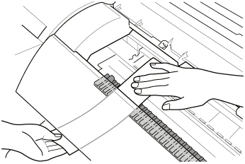 - Se la guida di uscita è sporca, potrebbe imbrattare il bordo della carta quando viene tagliata. Si consiglia di pulire la guida di uscita anche se non sembra sporca, perché potrebbe essere coperta di polvere di carta.