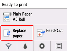Se non viene visualizzato "Rullo", selezionare Sostituire carta in rotolo (Replace roll paper) o Caricare carta in rotolo (Load roll paper) nella schermata Seleziona carta (Select paper) e caricare la carta in rotolo.