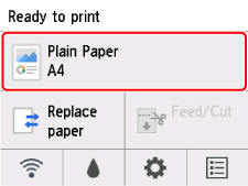 조작판의 홈 화면에서 용지 설정 표시 영역을 탭합니다.