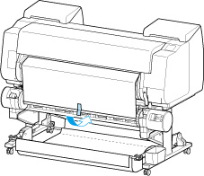 Al realizar la inversión hacia dentro, puede evitar que se suelte el papel enrollado presionando el rollo de papel con el brazo. No obstante, al hacerlo podría provocar trazas de presión en el papel. En este caso, toque el área de la unidad de rollo del área de visualización de información de soporte y establezca Ajuste de retención de papel (Paper retention settings) en Liberar (Release).