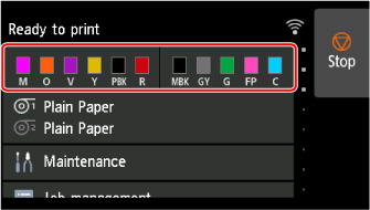 - Se puede sustituir el depósito de tinta incluso durante la impresión, cuando se están cancelando trabajos de impresión o se está haciendo avanzar el papel.
