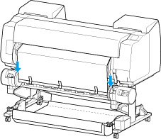 L'opération suivante nécessite que le support du rouleau ne soit pas installé sur l'unité de rouleau et que le rouleau ne soit pas chargé sur le support du rouleau. Si le support du rouleau est installé sur l'unité de rouleau, commencez par retirer le support du rouleau de l'unité de rouleau, puis retirez le rouleau chargé sur le support du rouleau. (Reportez-vous à « Retrait du rouleau inférieur de l'unité de rouleau (en option) ».) (Reportez-vous à « Retrait des rouleaux du support du rouleau ».)