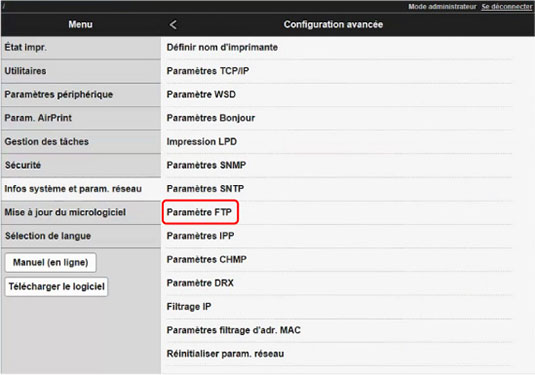 Sélectionnez Paramètre FTP.
