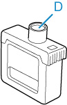 Riporre il serbatoio d'inchiostro rimosso con l'inchiostro residuo con i fori dell'inchiostro (D) rivolti verso l'alto. In caso contrario, potrebbe disperdersi dell'inchiostro e causare macchie. Riporre il serbatoio d'inchiostro rimosso in un sacchetto di plastica e sigillarlo.